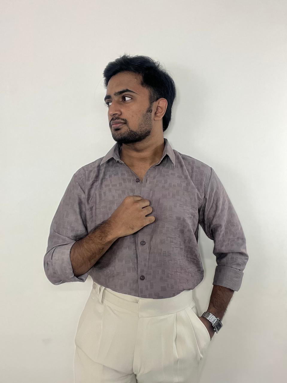 Mauve taupe textured premium self design shirt