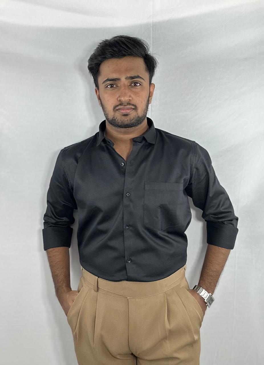 Midnight Black satin shirt | premium natural sheen