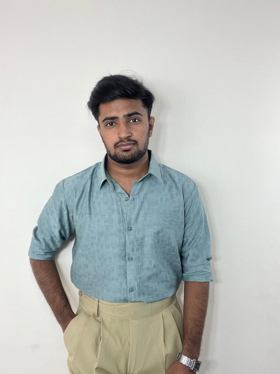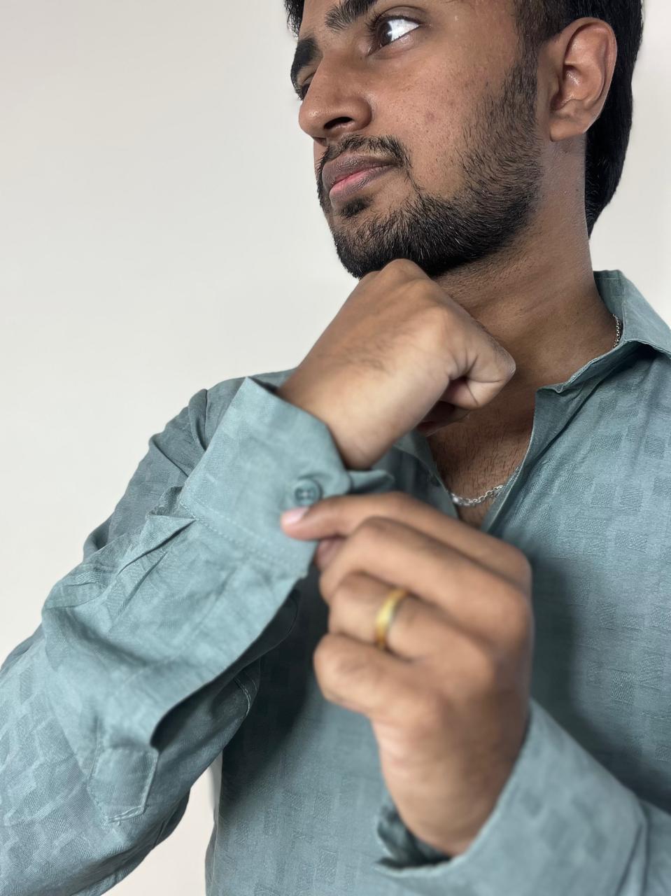 Sage teal textured premium self design shirt