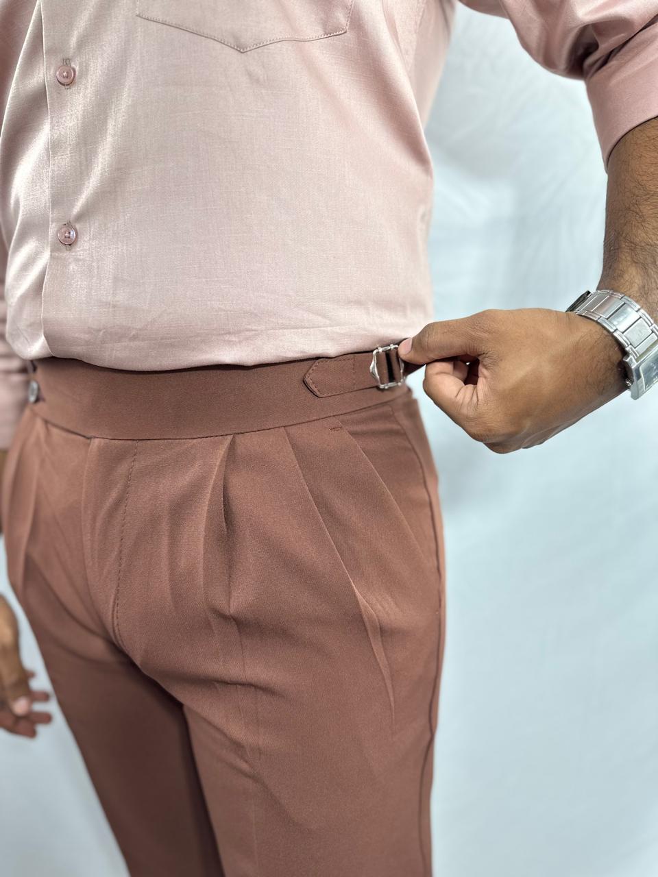 stone red double-buckle gurkha pants for men