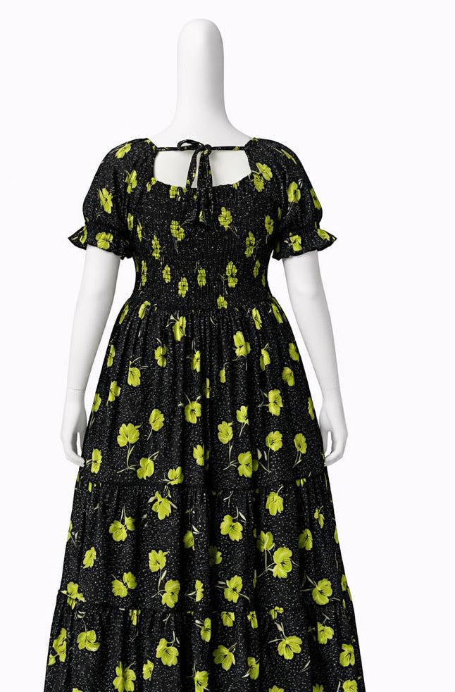 Women's Black & green printed sundress with puff sleeves