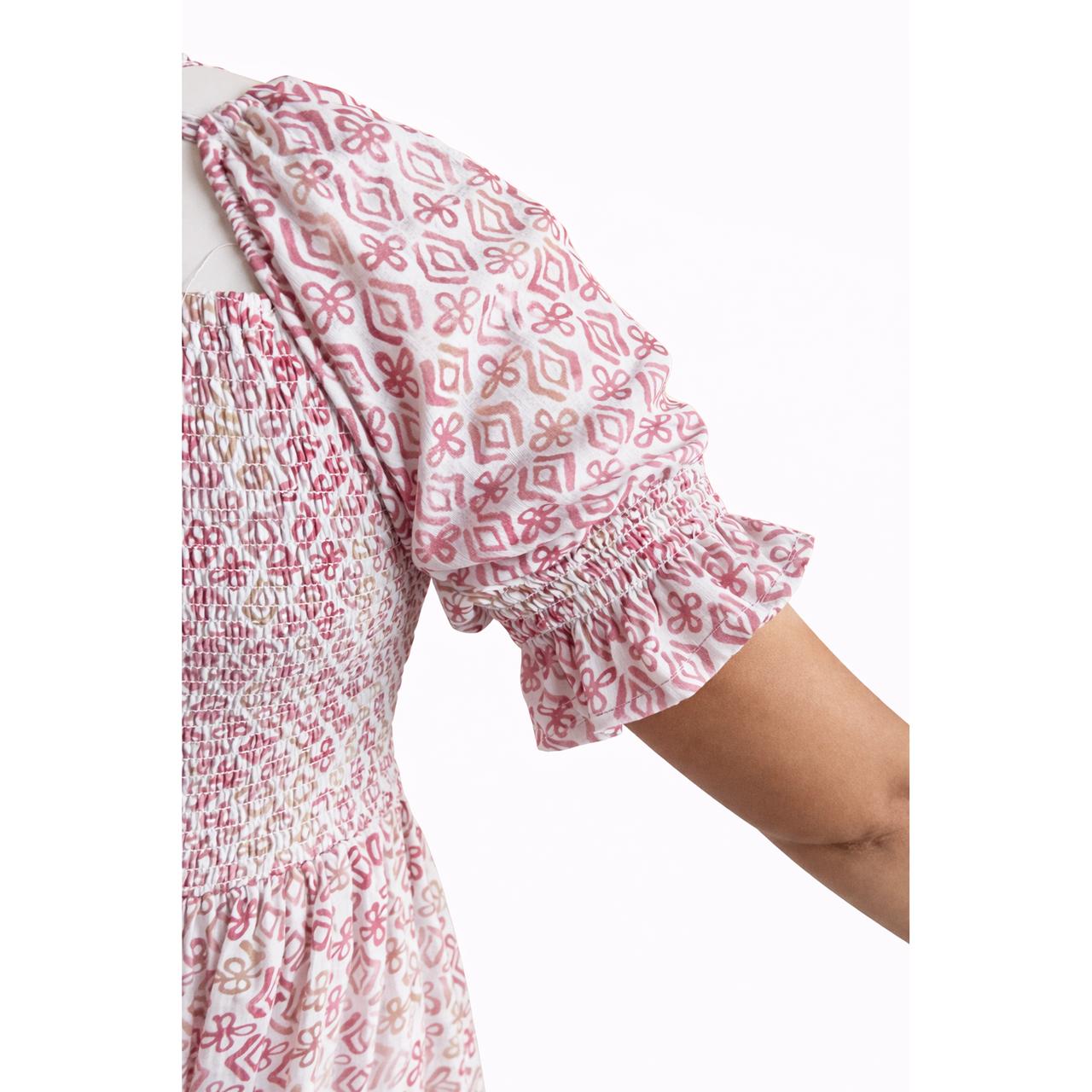 Women's pink printed sundress with puff sleeves